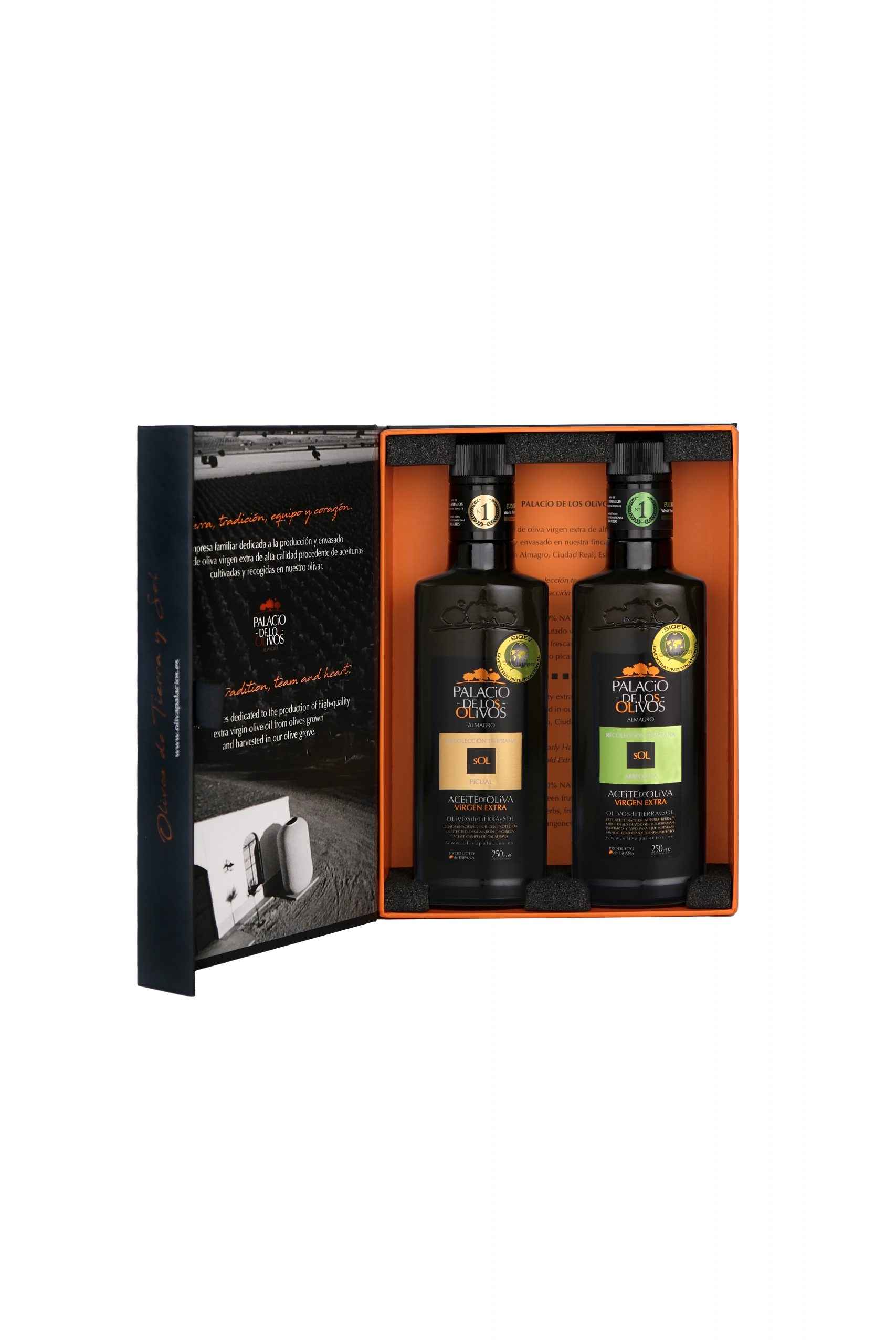 Cada estuche contiene dos botellas de 250ml de Aceite de Oliva Virgen Extra (AOVE) Premium: una botella de la variedad de aceituna Picual y otra botella de la variedad Arbequina, cada una con singulares características y matices que realzarán tus platos y deleitarán tu paladar. Estas variedades se encuentran dentro de los Aceites premiados gourmet mejor valorados.